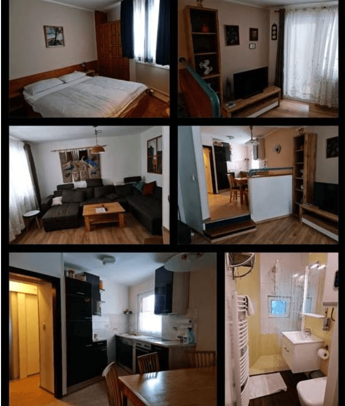 - Apartma ima dve spalnici, dnevni prostor s kuhinjo in jedilnim kotom, predprostor, kopalnico in TV.